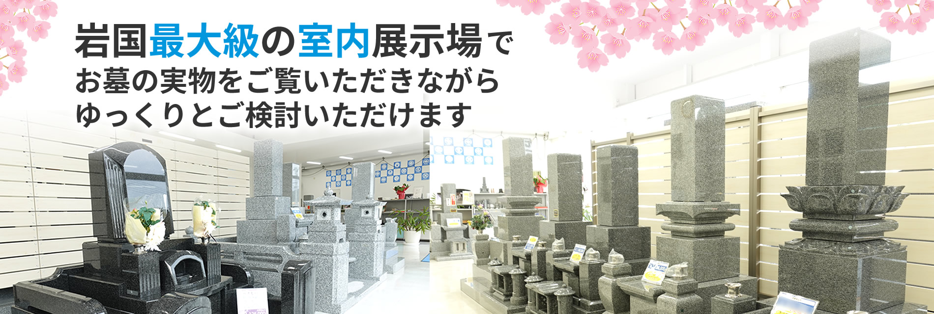 1. 岩国最大級の展示場。色々なお墓を比較検討できる