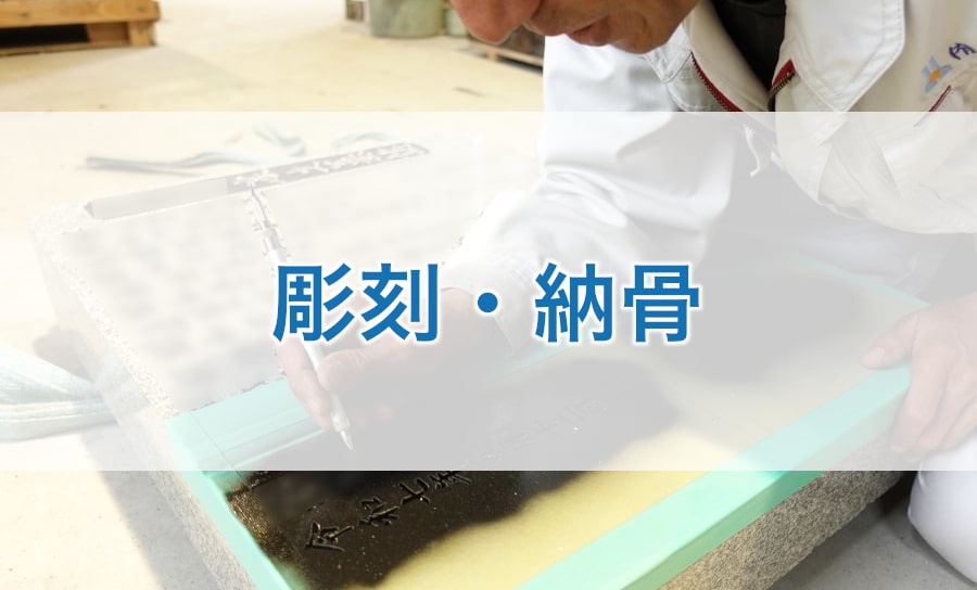 お墓の文字彫刻やご納骨のお手伝いは、当店で建立していないお墓でも対応可能です。現在彫られている彫刻と同じ書体となるように彫刻いたします。ご納骨のお手伝いも、どうぞお気軽にお問合せ下さい。