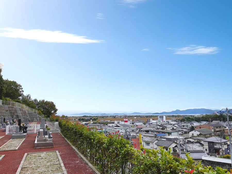 霊園からの眺めは、このようにとても見晴らしが良く、どの区画も日当たり良好。